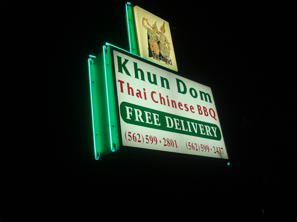 Alright so maybe today’s feature isn’t as vulgar as one would suggest. If anything, Khun Dom (pronounced koon-dom) Restaurant in Long Beach, California (developed five years ago) caters to a more family oriented atmosphere. Within the epicenter of Thai, Cambodian and Vietnamese families in the surrounding area, the neon sign’s inviting glow was difficult to pass up.
