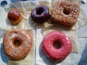 Flight of Doughnut Plant Donuts (L-R;T-B: Creme Brulee, Blueberry, PB & J, Vanilla Bean and Raspberry