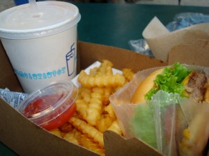 Shake Shack Meal: Cheeseburger, Fries and Hot Fudge and Vanilla Milkshake