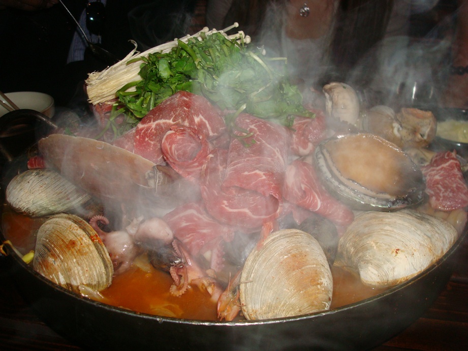 Sik Gaek's Giant Korean Seafood Stew: Brisket Slices and Copious Amounts of Sea Edibles (Abalone, Clams, and Squid just to name a few)