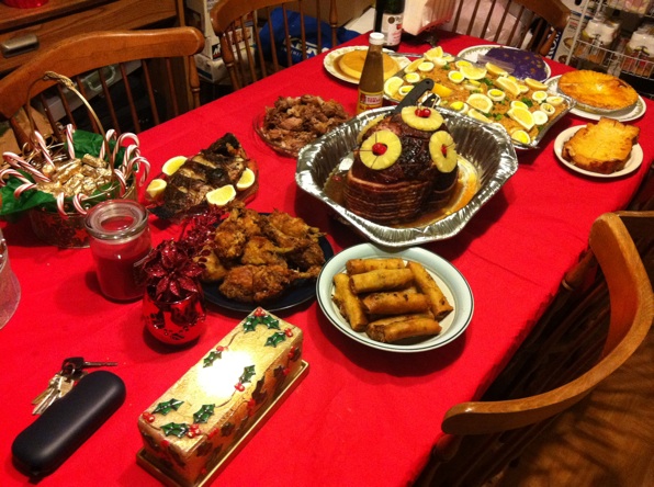 Yeah it took a lot longer than that… hell of a lot longer. Anyway, what food site wouldn’t be complete then to recap the Holiday Season. Whether it’s Hannukah, Kwanzaa, or Christmas everyone’s got a reason to celebrate this time of year. For myself, it’s one of the first years I didn’t really do anything for Christmas. When I was younger, our (now old) house was definitely more festive in its yester-years. Everyone from my uncle’s immediate family to my distant cousins standing around our faux-fireplace (a gas heater). Eating from old porcelain plates that contain a variety of my mom’s simple but modern interpretations of Filipino and American cuisine.