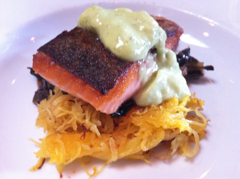 Sea Salt (a sibling of T-Rex in the K2 Restaurant Group) was also a delightful experience with a few misses here and there. The frisee’ salad was an excellent starter, the bacon vinaigrette was prominent throughout the consumption of this dish and the egg and croton brought it altogether. Oysters were of the freshest quality so again no complaints. The Risotto wasn’t as promising as Cafe Hiro’s or many other one’s I’ve tried in the past. The Dungeness crab was prominent through and through, the rice wasn’t cooked evenly some parts of it were a bit more al dente than expected and lacked the fluidity of many great risottos have. Salmon was well executed, seasoned and cooked properly but I could have done with out the spaghetti squash and kale, it was unnecessary.