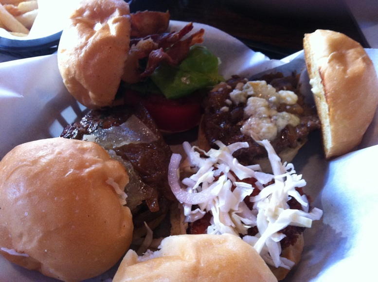 Quattro Sliders; Top Left going clockwise: BLT, Ground Beef, Fried Chicken and Lamb (The Sycamore; San Francisco, CA)