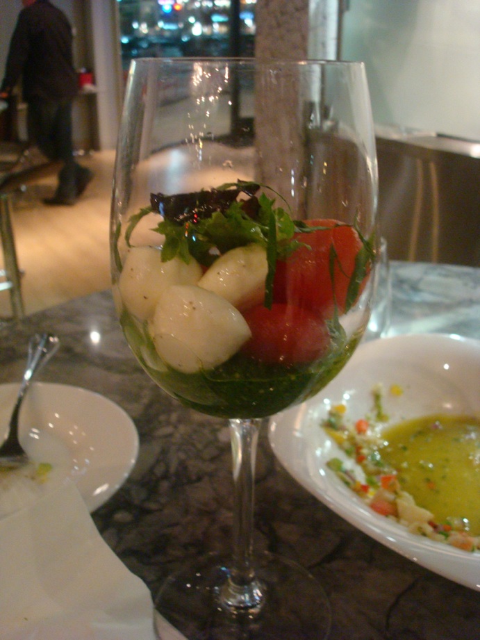 Off-Menu Item #2: Valentine’s Day Caprese, courtesy of Chef Austin. A romantic appetizer set off in a wine glass. The tomatoes, mozzarella and pesto oil came together quite nicely.