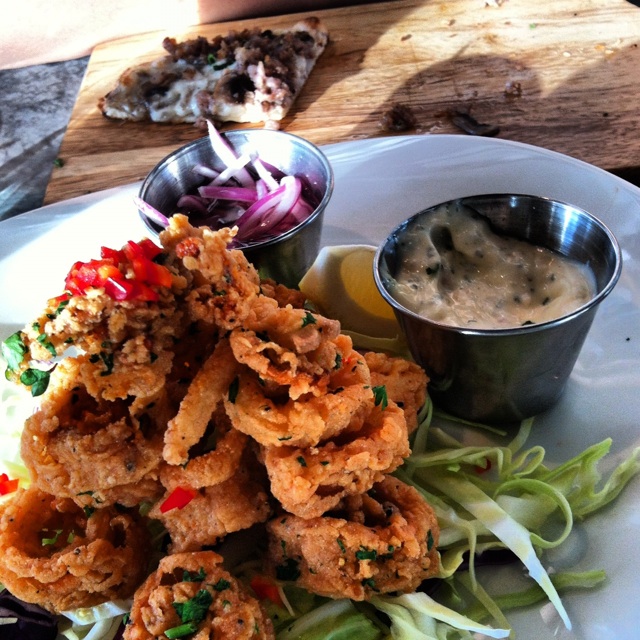 Fried Calamari (staple in Italian Cuisine), a nice breading makes for a crunchy outside texture with a warm moist Calamari core. Accompanied with an aioli and some onions, any seafood lover would appreciate. **As a side note, there’s the last piece of flat bread I mentioned earlier.