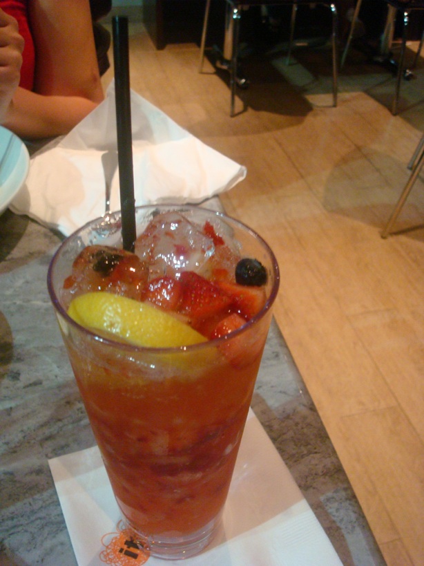 Beverage Option #1: Strawberry, Lemon and bits of Blueberry Cooler. Virgin cocktail approval number one, down the esophagus