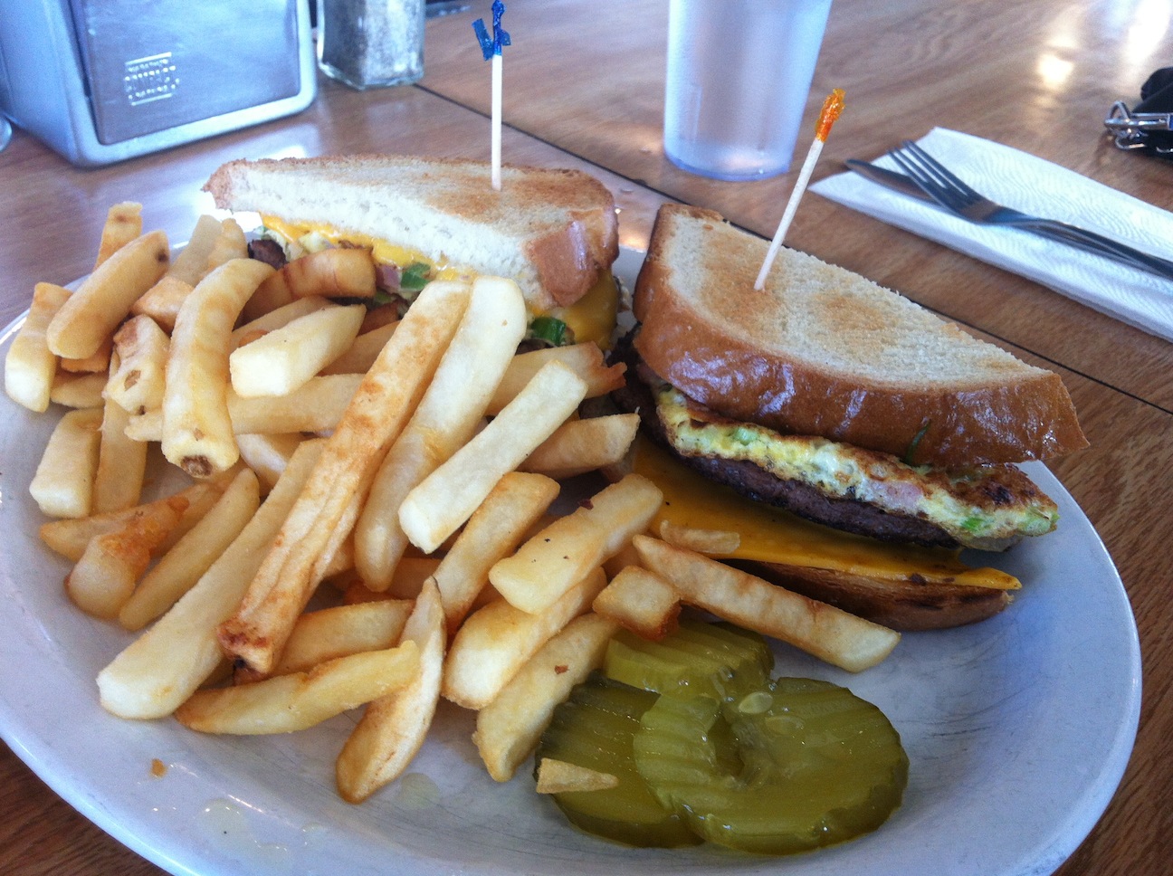 You can argue the menu would have been a great run-on sentence all in itself. The convoluted presentation and the chuckling which followed made for a brief moment in viral entertainment (cue the fox song). Finally the waitress came back, she mentioned her name was Saba and took our orders. We asked her what are the popular items for this place and she made things a lot easier when narrowing down to our final options. Their specialty sandwiches were sought after by the locals and drop ins and of course the highly mentioned Chicken Country Fried Steak (which stole the hearts of a few East Bay foodies). With final deliberation we came up with these two items as the best choices for our dining experience. The first is what they call, “Nikko’s Special Sandwich, Our House Specialty.” ‘Lo and behold it’s minor hyperbole can be summarized in one phrase, “Omelette Sandwich w/ Fries and Pickles.”