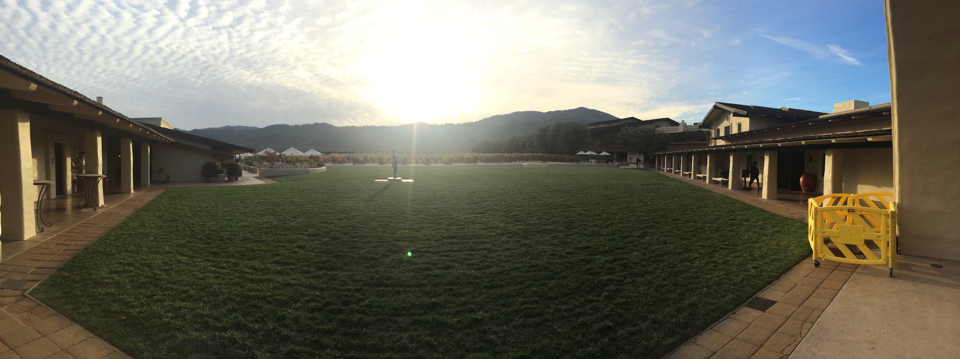 Surprised at Sunset: First Panoroamic Shot: Robert Modavi Winery Central Courtyard