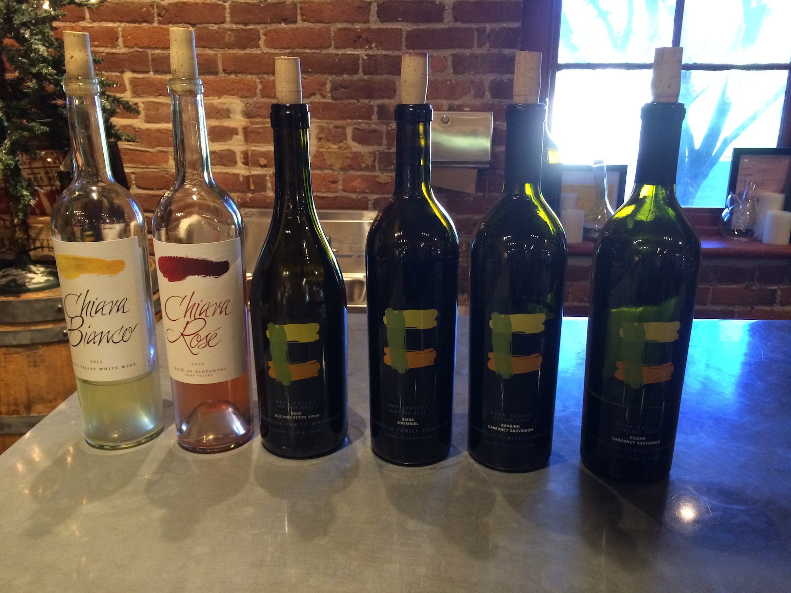 Napa Style Tasting w/ Sommelier Stephanie (L-R) Progression (all N.V,): Chiara Bianco 2012, Chiara Rose of Zinfandel 2012, Roux Old Vine Petite Sirah Vintage 2011, Qiana Zinfandel Vintage 2011 and Bambino Cabernet Sauvignon Vintage 2010